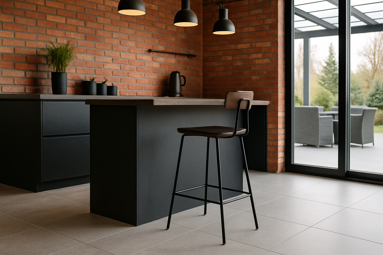 Kuchnie industrialne często korzystają z dużych przeszkleń lub otwartej przestrzeni, dlatego hoker staje się mocnym elementem aranżacji widocznym z różnych stron. Jego stylistyka powinna harmonizować z wyspą kuchenną, lampami, metalowymi półkami i całą kompozycją wnętrza.